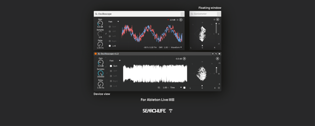 Also, you have two floating windows (one for the Oscilloscope and the other for Goniometer) with the possibility to show or hide the title bar.